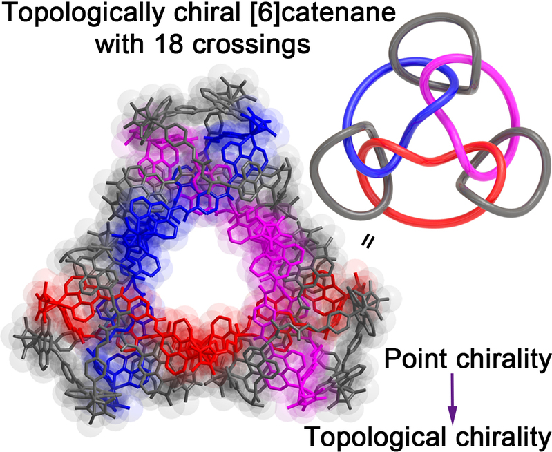Stereoselective Self-Assembly of a Topologically Chiral [6]Catenane with 18 Crossings