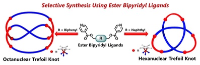Same knot, longer rope: altering ligand geometry provides control over nuclearity in self-assembled trefoil knots