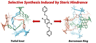Selective Construction of Trefoil knots and a Molecular Borromean Ring Induced by Steric Hindrance of Thioether Ligands